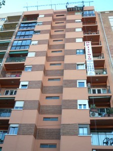 Reparación de grietas, desconchados,etc en fachada de mortero de cemento, y revestimiento de la misma en color.