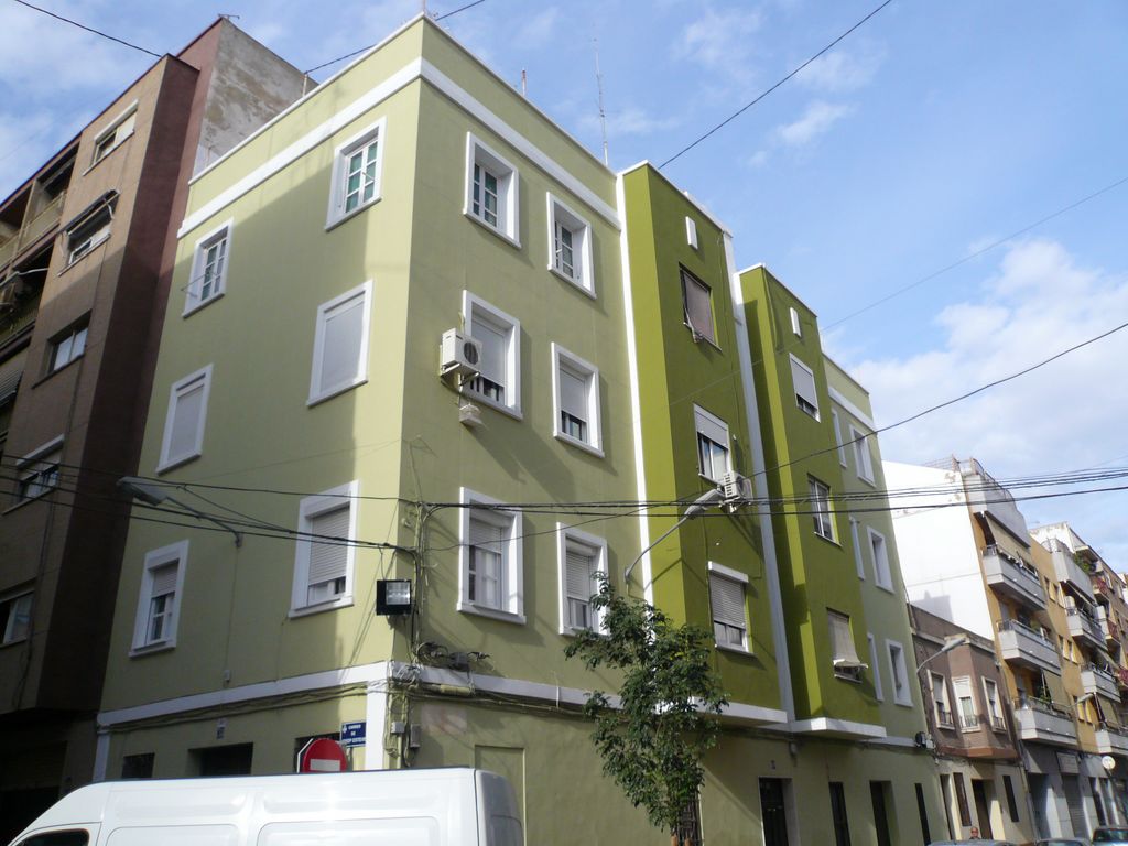Fachada para su tratamiento con masillas acrilicas y morteros cementosos. Especialmente en los fajones , bajos de balconadas y miradores. y aplicación de imprimación pasivadora