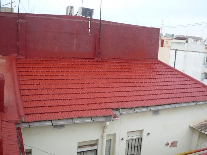 Tejado impermeabilizado con aplicación de antigoteras de poliuretano, a dos manos para su perfecto sellado.Tejado totalmente imperemeabilizado con antigoteras de poliuretano